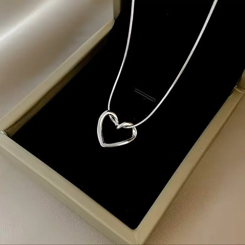 Colar Coração Vazado Folheado Prata 925 com Pingente de Coração Grosso